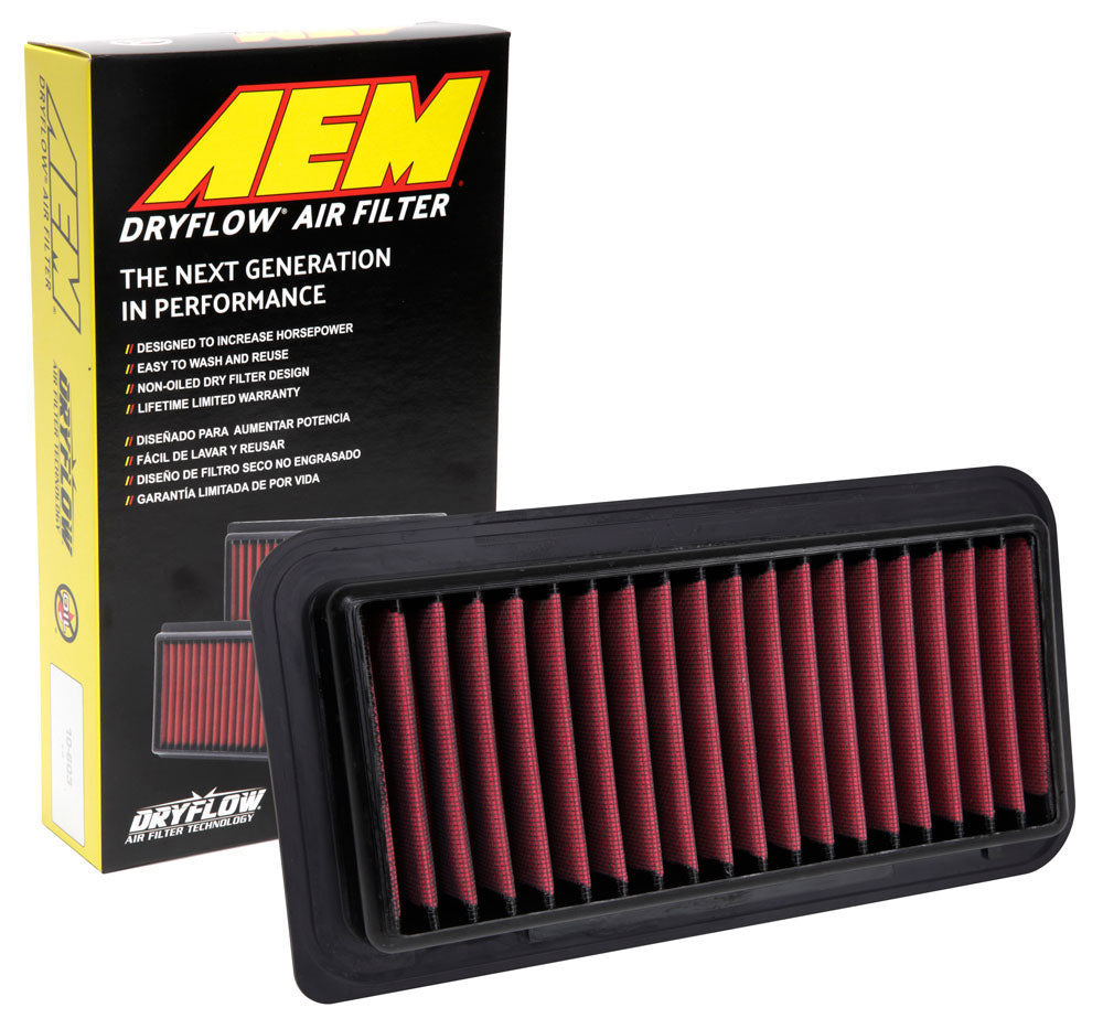 AEM Dryflow Air Filters are washable synthetic air filters designed for an optimum combination of air flow, filtration, and performance. AEM Dryflow filters use an innovative high performance oil-free filtration material that allows easy cleaning, durable service, and excellent filtration.