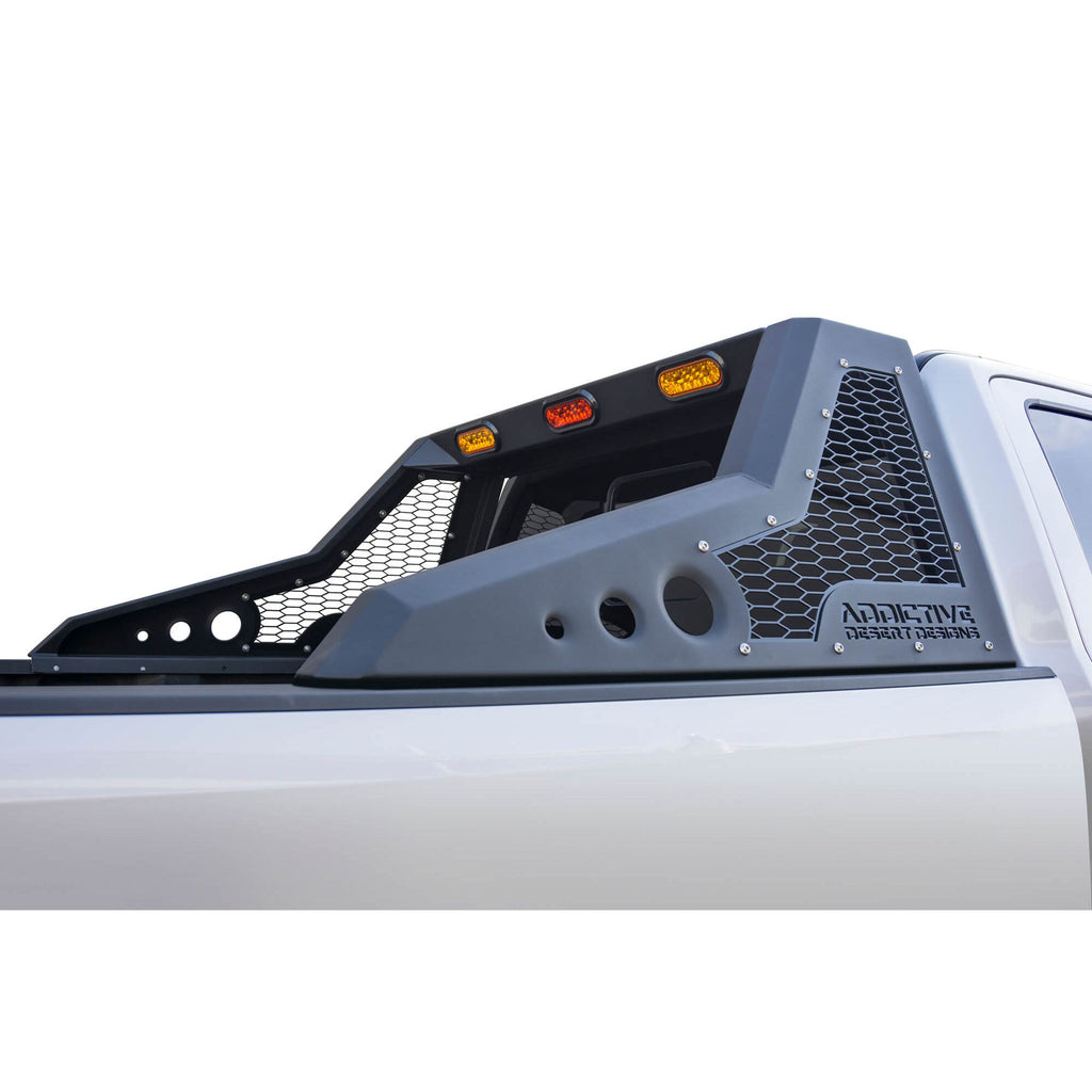 The HoneyBadger Chase Rack?s modular design allows you to add what you want, where you need it, with three key components: base rack, tire carrier, and the roof rack. Mix and match modular components to build a chase rack for your truck's needs. With an optional tire carrier and roof rack add-on you can add as much utility as you want.
