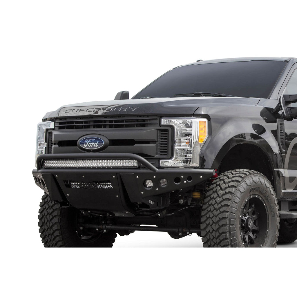 Our signature Stealth style bumper with a radius design, the Stealth R is a formed tube front bumper, made from .120 wall steel providing your 2017 Ford Super Duty with superior protection. The radius design follows the factory front end of your Super Duty to give this front bumper a tight fitment.