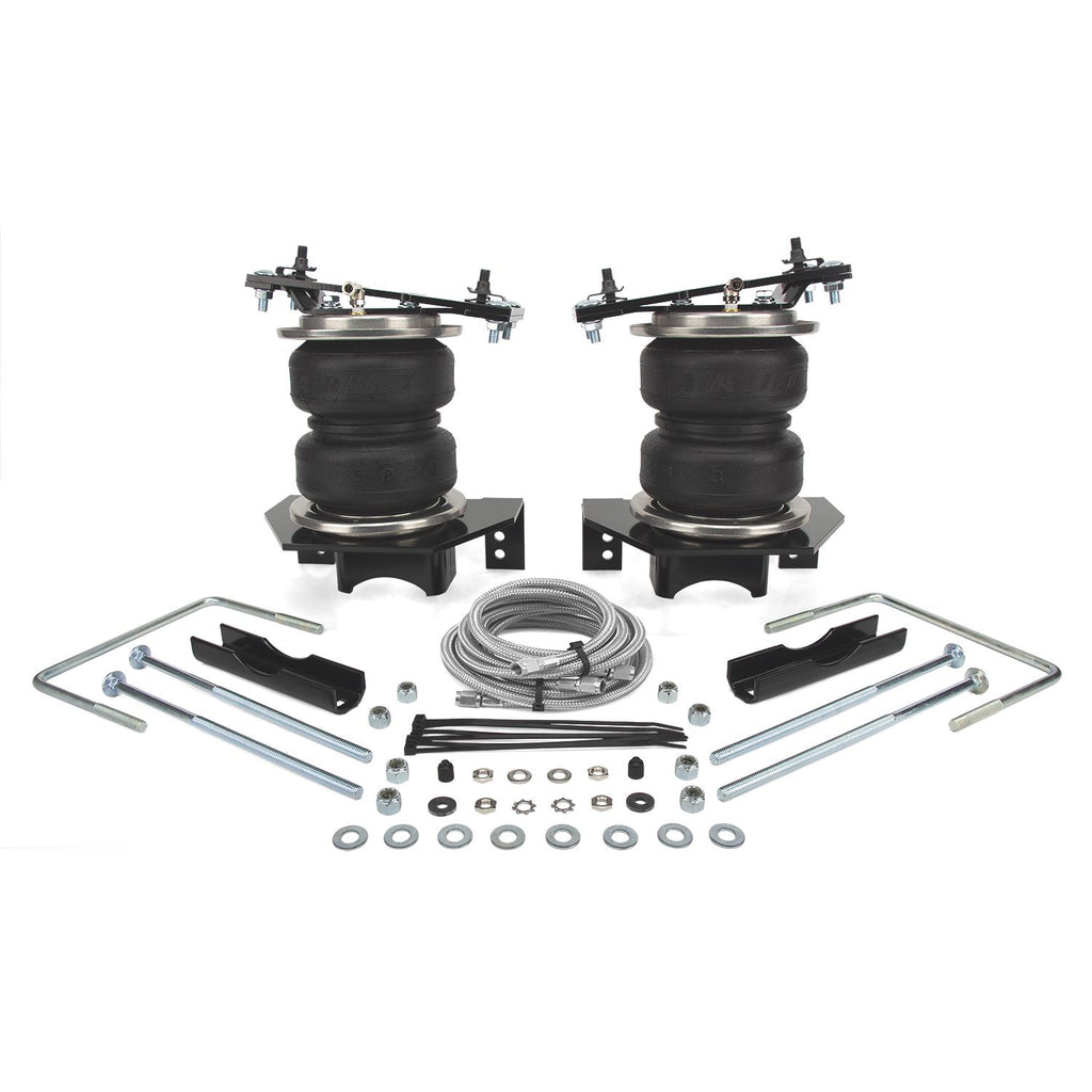 Offering up to 5,000 pounds of load-leveling capacity, the new LoadLifter Ultimate Plus kit from Air Lift Company will make towing and hauling with your a comfortable and stress-free experience. For the elite user, we've paired our fully-adjustable air springs with the highest-quality components, making it Air Lift's longest-lasting load support kit that money can buy. The new LoadLifter 5000 Ultimate Plus kit helps to eliminate problems frequently faced when towing and hauling, such as squat, poor headlight aim, trailer sway, and body-roll. The double-bellow air springs feature an Air Lift-exclusive internal jounce bumper. This added feature absorbs shock and works to prevent bottoming out. It replaces the factory jounce bumper and is completely maintenance free, allowing the air spring to run safely with zero air pressure in emergency situations. With the ability to adjust the air pressure in the springs from 5-100 PSI, making your vehicle ready for any weight and any situation. The added stability provided by air springs allow you to tow and haul safely, with optimal braking and steering control. What sets the new LoadLifter 5000 Ultimate Plus apart from other Air Lift kits are the upgraded components for the elite tower and hauler. These exclusive upgrades include stainless steel mounting hardware, roll plates, and braided air line. With the added protection that stainless steel provides, you can tow and haul knowing your air springs are protected from sharp edges and road debris. Add in the military-grade AN fittings that simply thread together for a metal-to-metal seal, you know that your system will be easy to install and leak-free with no air line cutting required.