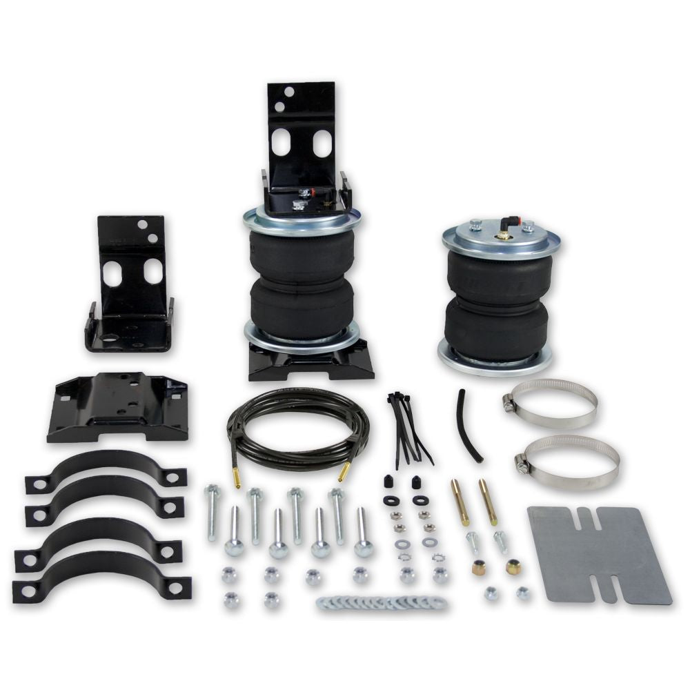 LoadLifter 5000 ULTIMATE adjustable air spring kits feature all of the benefits of our heaviest rated air spring with the addition of an internal jounce bumper inside the spring for the ultimate in ride comfort. An Air Lift exclusive product. Fits vehicles with in-bed hitches. Tow and haul the heaviest loads with safety and comfort with LoadLifter 5000 ULTIMATE. Works with vehicle's leaf springs to provide up to 5,000 lbs. of front load leveling capacity and keeps the vehicle riding stable, level and comfortable whether loaded or unloaded. Fully adjustable from 5 to 100 PSI. The closed-cell urethane foam jounce bumper inside the Ultimate air springs provide a cushion of air that absorbs shock, eliminates harsh jarring on rough roads and protects vehicles carrying heavy loads. Never bottom out again with the ULTIMATE. LoadLifter 5000 ULTIMATE air springs are maintenance free! Safely run with zero air pressure because of the internal jounce bumper. Replaces factory jounce bumper that is sometimes removed when adding air springs. Easy to install in less than 2 hours. Includes industry-exclusive 60 Day No Questions Money Back Guarantee! Includes the most comprehensive Lifetime Warranty in the industry---covers all kit contents including brackets, fittings and air line. Air springs are built like a tire and are reinforced by durable, 2-ply fabric for maximum strength. Exclusive upper and lower roll plates included. Protect the springs from sharp edges, such as brackets or the frame. They increase load capacity up to 10%. The kit includes 2 air springs, brackets, air lines, Schrader valve and all of the hardware needed for installation. Includes fully illustrated instruction manual. Add an Air Lift on-board air compressor system to inflate and deflate air springs with the touch of a button from inside or outside of the vehicle. Air Lift is a 3rd generation family owned company that has been manufacturing the highest quality suspension products in Lansing, MI.