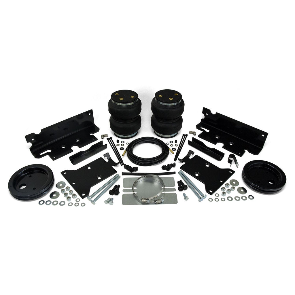 LoadLifter 5000 ULTIMATE adjustable air spring kits feature all of the benefits of our heaviest rated air spring with the addition of an internal jounce bumper inside the spring for the ultimate in ride comfort. An Air Lift exclusive product. Fits vehicles with in-bed hitches. Tow and haul the heaviest loads with safety and comfort with LoadLifter 5000 ULTIMATE. Works with vehicle's leaf springs to provide up to 5,000 lbs. of rear load leveling capacity and keeps the vehicle riding stable, level and comfortable whether loaded or unloaded. Fully adjustable from 5 to 100 PSI. The closed-cell urethane foam jounce bumper inside the ULTIMATE air springs provide a cushion of air that absorbs shock, eliminates harsh jarring on rough roads and protects vehicles carrying heavy loads. LoadLifter 5000 ULTIMATE air springs are maintenance free. Safely run with zero air pressure because of the internal jounce bumper. Replaces factory jounce bumper that is sometimes removed when adding air springs. Requires no drilling into frame. Includes industry-exclusive 60 Day No Questions Money Back Guarantee. Includes the most comprehensive Lifetime Warranty in the industry---covers all kit contents including brackets, fittings and air line. Air springs are built like a tire and are reinforced by durable, 2-ply fabric for maximum strength. Exclusive upper and lower roll plates included. Protect the springs from sharp edges, such as brackets or the frame. They increase load capacity up to 10%. The kit includes 2 air springs, brackets, air lines, Schrader valve and all of the hardware needed for installation. Includes fully illustrated instruction manual. Add an Air Lift on-board air compressor system to inflate and deflate air springs with the touch of a button from inside or outside of the vehicle.