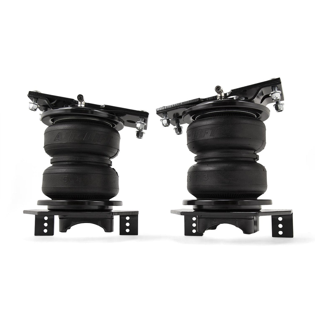 LoadLifter 5000 ULTIMATE adjustable air spring kits feature all of the benefits of our heaviest rated air spring with the addition of an internal jounce bumper inside the spring for the ultimate in ride comfort. An Air Lift exclusive product! Fits vehicles with in-bed hitches. Tow and haul the heaviest loads with safety and comfort with LoadLifter 5000 ULTIMATE. Works with vehicle's leaf springs to provide up to 5,000 lbs. of rear load leveling capacity and keeps the vehicle riding stable, level and comfortable whether loaded or unloaded. Fully adjustable from 5 to 100 PSI. The closed-cell urethane foam jounce bumper inside the ULTIMATE air springs provide a cushion of air that absorbs shock, eliminates harsh jarring on rough roads and protects vehicles carrying heavy loads. Never bottom out again with the ULTIMATE! LoadLifter 5000 ULTIMATE air springs are maintenance free! Safely run with zero air pressure because of the internal jounce bumper. Replaces factory jounce bumper that is sometimes removed when adding air springs. Easy to install in less than 2 hours. Requires no drilling into frame! Includes industry-exclusive 60 Day No Questions Money Back Guarantee! Includes the most comprehensive Lifetime Warranty in the industry---covers all kit contents including brackets, fittings and air line. Air springs are built like a tire and are reinforced by durable, 2-ply fabric for maximum strength. Exclusive upper and lower roll plates included. Protect the springs from sharp edges, such as brackets or the frame. They increase load capacity up to 10%. The kit includes 2 air springs, brackets, air lines, Schrader valve and all of the hardware needed for installation. Includes fully illustrated instruction manual. Add an Air Lift on-board air compressor system to inflate and deflate air springs with the touch of a button from inside or outside of the vehicle.