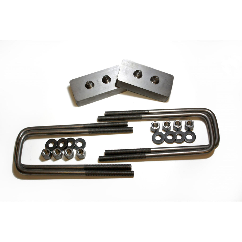 2004-2019 Ford F150 2WD/4WD (To be used with factory blocks. Includes longer U-bolts). Rear 1.0"" Block Kit. PN 5-5001 Rugged Off Road1 Inch rear block kit for 2004-2019Ford F150 2WD 4WD trucks. Comes complete with vehicle specific u-bolts and hardware. Adds a nice rake for towing or hauling additional weight in the bed. Easy to install. Safely raises trucks 1 inch. Does not require any permanent modifications