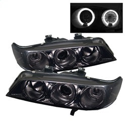 ( Spyder ) - 1PC Projector Headlights - LED Halo - Amber Reflector - Smoke - High H1 (Included) - Low H1 (Included)