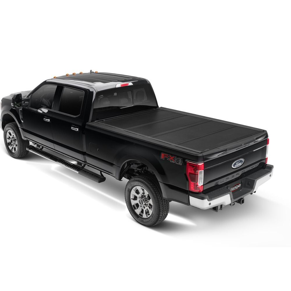 The new ArmorFlex hard folding cover is designed to protect your truck bed and its contents, while maintaining its strength, style and durability. Heavy-duty panels are coated with a LINE-X(R) specialty automotive coating designed to provide advanced protection from dents and scuffs, even in the most extreme environments. The dual-action tailgate seal offers universal tailgate operation, allowing you to close the tailgate with the last panel of the cover up or down. ArmorFlex is proudly made in the USA, and comes backed by a 5-year warranty.